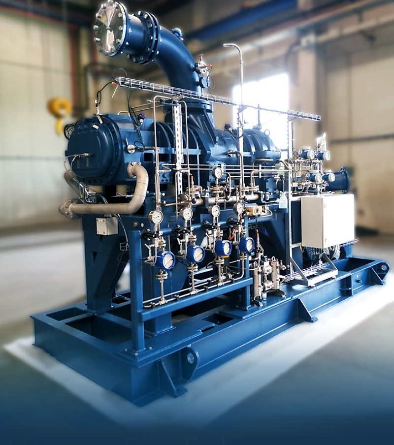 El compresor de gas de proceso transporta helio en un circuito de refrigeración cerrado. La función principal del circuito de enfriamiento es eliminar continuamente el calor del objeto enfriado, la rueda Target, un componente esencial en el proceso de generación de neutrones.