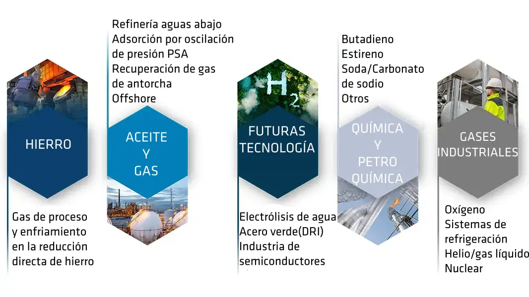 - Compresión de gas en altos hornos y hornos de coque.