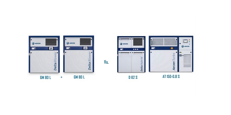 Uno de los casos de éxito de Aerzen, es el de Rheda-Wiederbruck, cambiándose dos soplantes GM 80 L por una una Turbo AT150-0,8S y una Hybrid D 62 S. Se ahorró un 28% de energía y la inversión fue mucho menor que si las soplantes se hubieran sustituido únicamente por turbomáquinas.