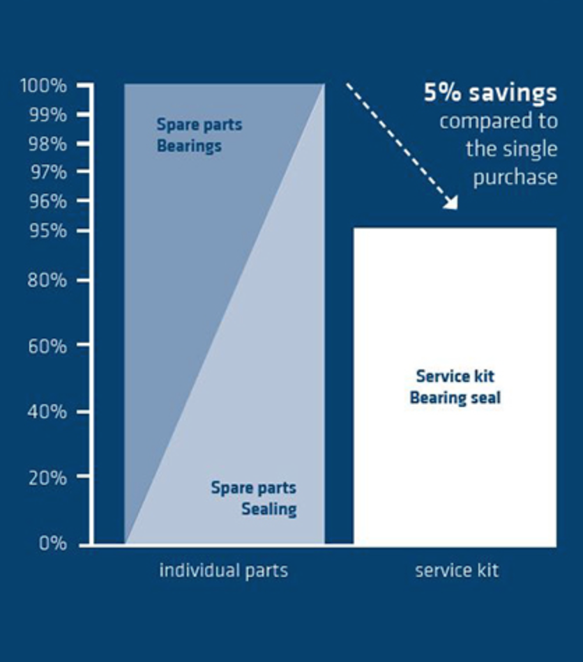 Siempre es una buena elección, ahorra tiempo, dinero y minimiza el tiempo de inactividad de la máquina. La gama de productos incluye aproximadamente 1.000 kits diferentes cuidadosamente ensamblados, con exactamente las piezas adecuadas que se requieren para el mantenimiento y la reparación. Cada kit individual se ensambla y empaqueta a pedido. Reducimos el trabajo a través de listas de piezas, reducimos los problemas con pedidos o entregas incorrectos. Aseguramos los kits de servicio individuales y específicos del cliente.