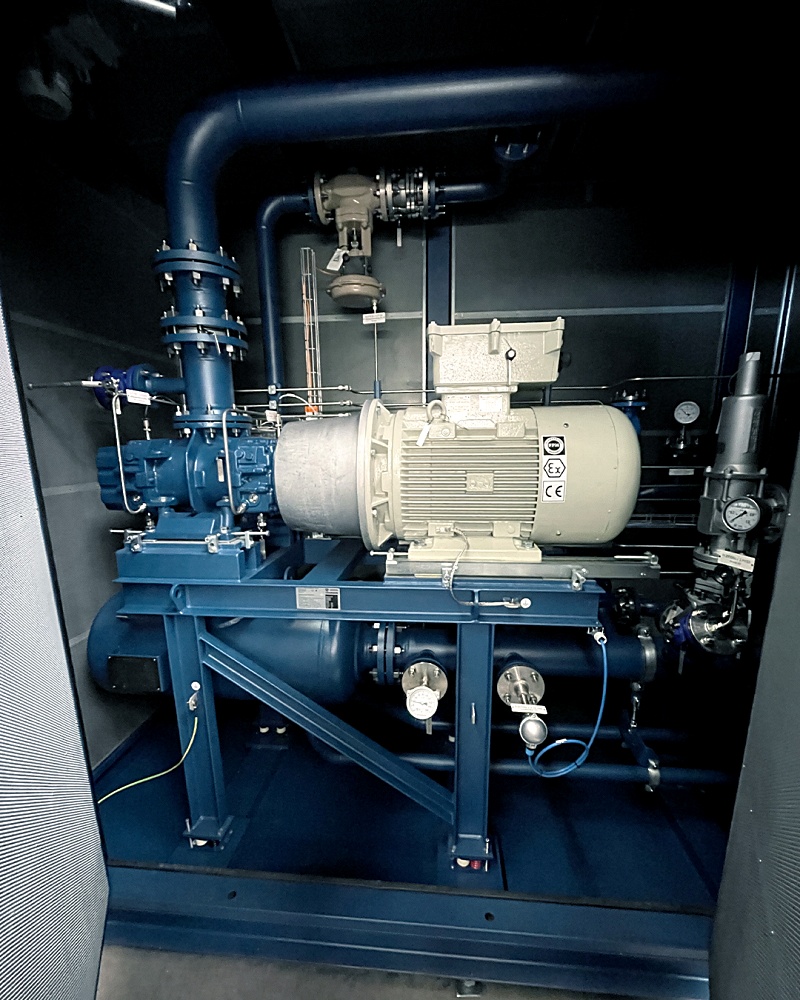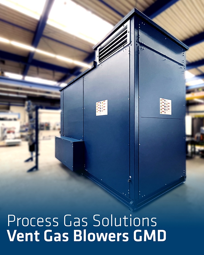 Las unidades de soplado se instalan al aire libre en una caja de sonido compacta, mientras que la instrumentación y el sistema de gas de sellado están convenientemente ubicados en el exterior en un bastidor separado.