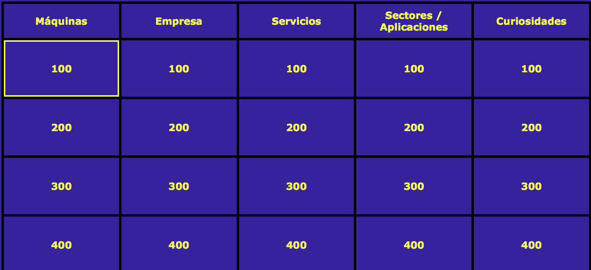 – Aparece el panel con las preguntas y los puntos (el valor de cada pregunta). Selecciona una: