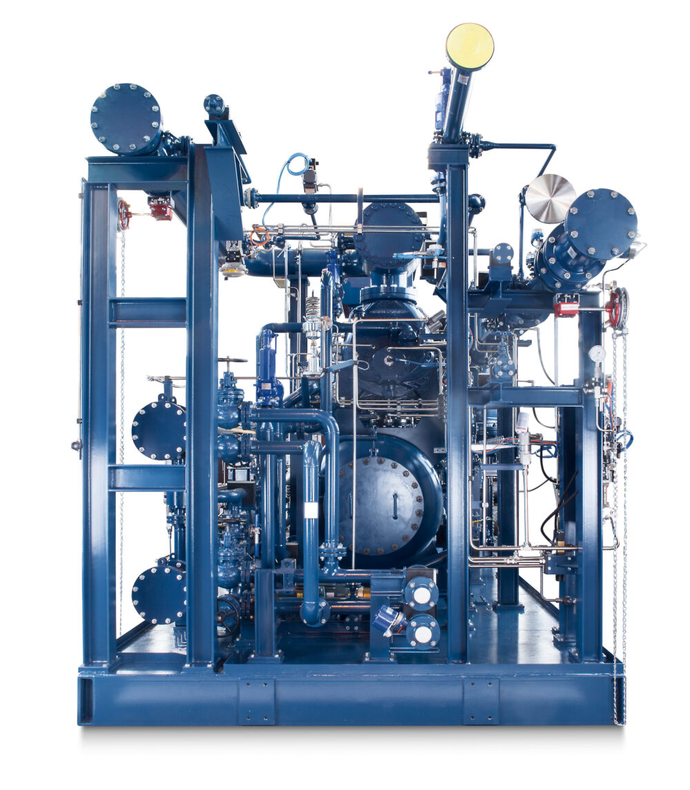 El VMY es imprescindible como componente esencial de las instalaciones de inyección de biogás (BGIP) para la compresión de biometano que más tarde se inyecta en las redes de gas. El compresor tiene un control de caudal variable mediante válvulas de control de accionamiento hidráulico (control de puertas).