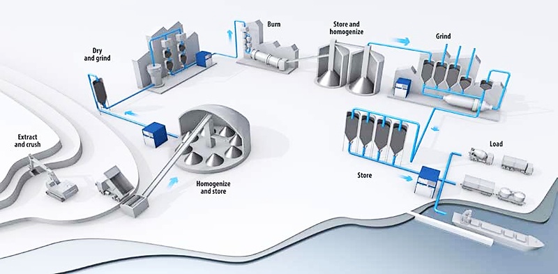 Hay dos formas de fabricar cemento. El método seco es el método de fabricación de cemento más común y popular. Aquí, las materias primas como la tiza, la piedra caliza, la arena de sílice, la arcilla y la pizarra, se someten a varias etapas de trituración hasta que tienen tres pulgadas (7,62cm) o menos de diámetro.