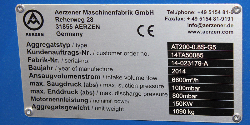 Placa de información de Aerzen Turbo G5.